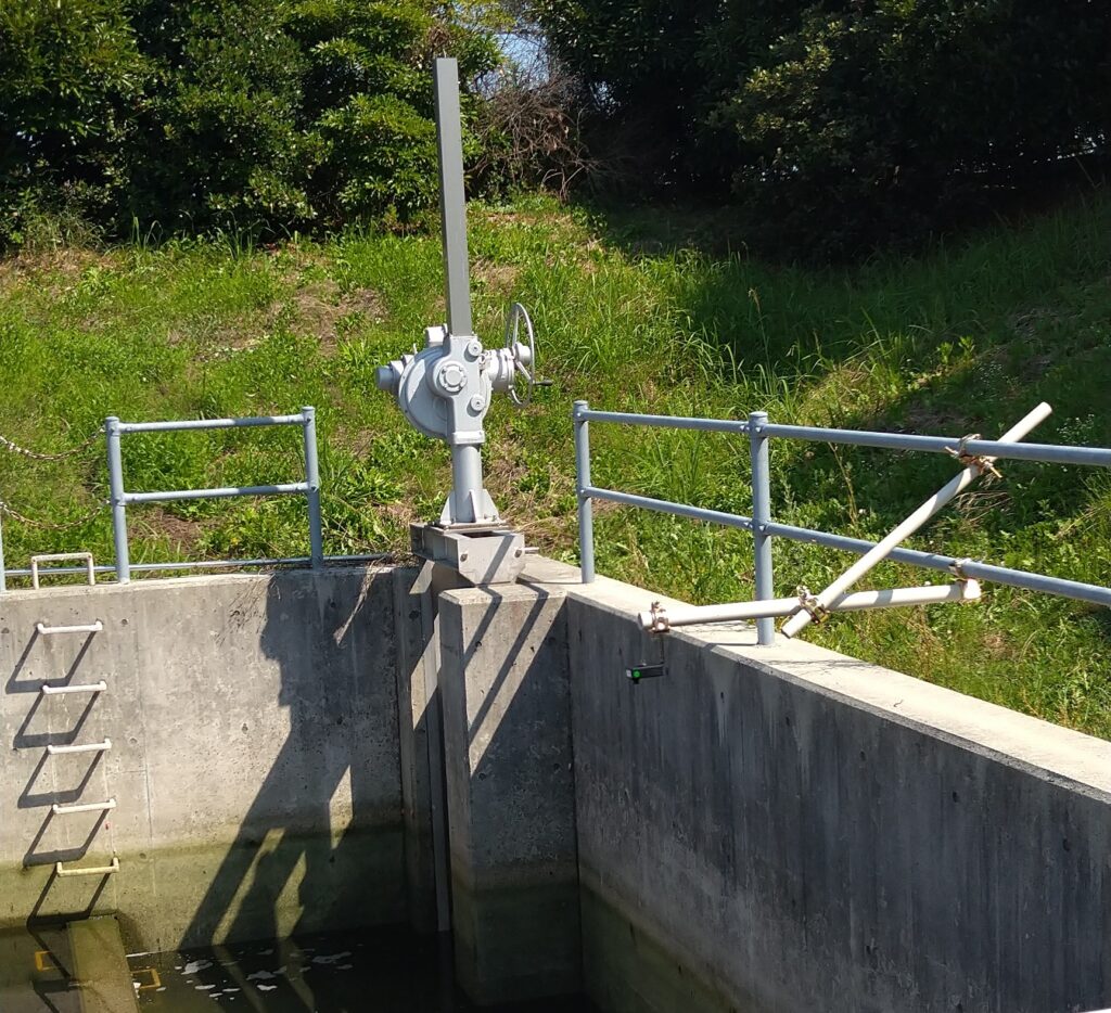 この工場では、貯水槽の水量を目視で確認し、満水に近づくと手動で海に放流していました。