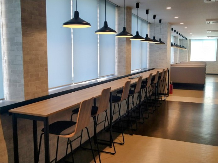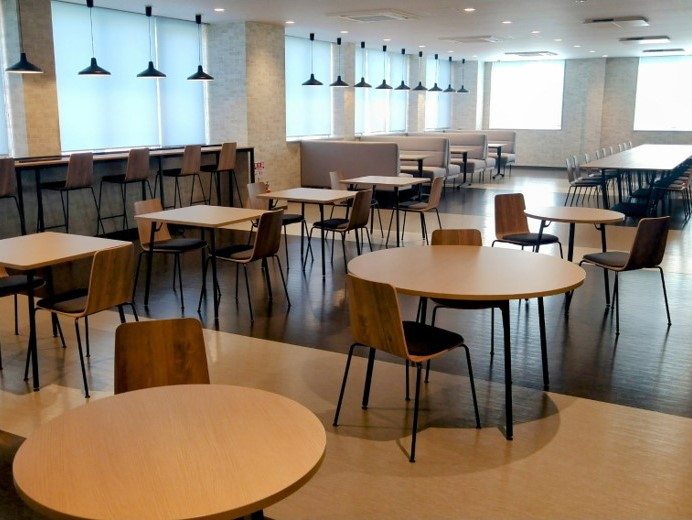 これまでの食堂は、4人掛けのテーブルが並んでいるだけで、従業員がゆったりと休憩できる空間ではありませんでした。そこで今回、ラウンジ風のデザインを採用し、カウンター席やファミレス席を新たに導入しました。特にファミレス席はコストはかかりますが、リラックス効果が高いと判断して取り入れています。実際に利用が始まると、最初に埋まるのはファミレス席で、従業員からも人気を集めています。