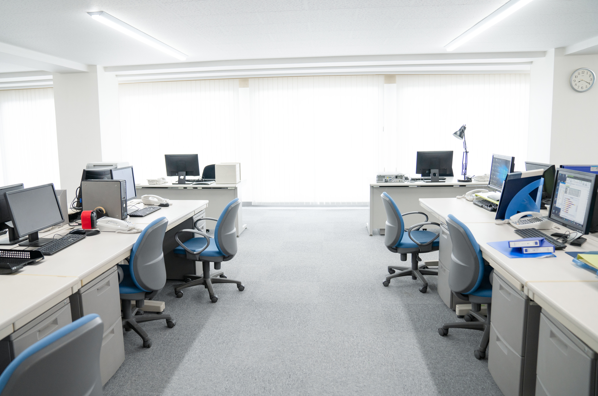 業務を止めないために、平日や日中のタイルカーペット工事が難しい場合も、神戸オフィスづくり.comにご相談ください。神戸オフィスづくりcomでは、休日や夜間、連休中の施工の相談も承っています。休日や夜間の施工の場合は、当社スタッフが施工管理を行いますので、お客さまの営業時間外の現場立ち合いを最小限にすることが可能です。